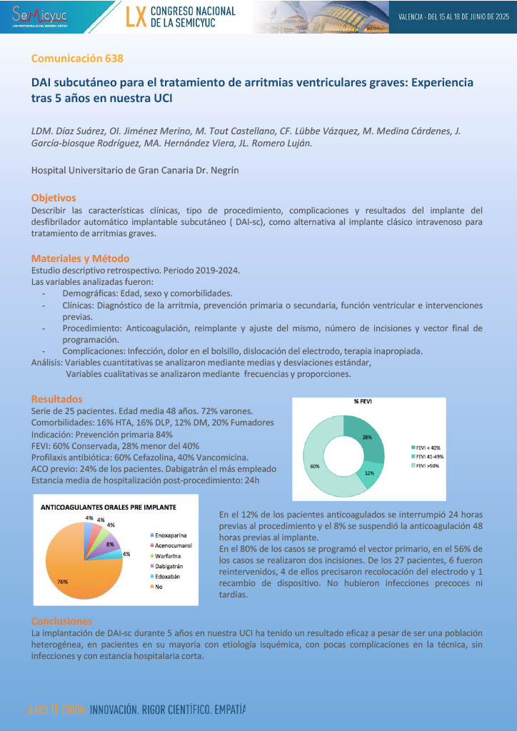 638. DAI subcutáneo para el tratamiento de arritmias ventriculares graves: experiencia tras cinco años en nuestra UCI