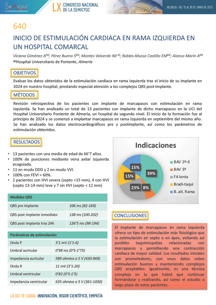 640. Inicio de estimulación cardíaca en rama izquierda en un hospital comarcal