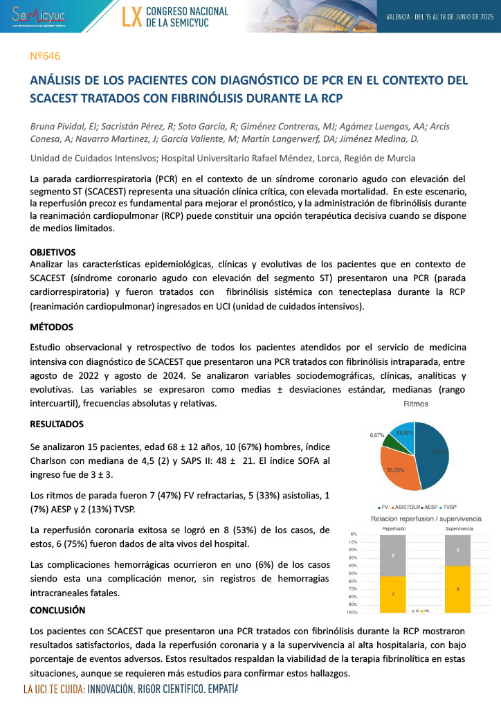 646. Análisis de los pacientes con diagnóstico de PCR en el contexto de SCACEST tratados con fibrinólisis durante la RCP