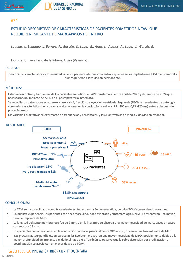 647. Estudio descriptivo de características de pacientes sometidos a TAVI que requieren implante de marcapasos definitivo