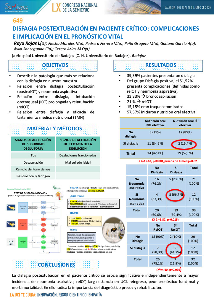 649. Disfagia postextubación en paciente crítico: complicaciones e implicación en el pronóstico vital