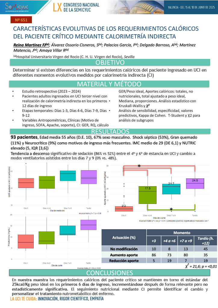 651. Características evolutivas de los requerimientos calóricos del paciente crítico mediante calorimetría indirecta