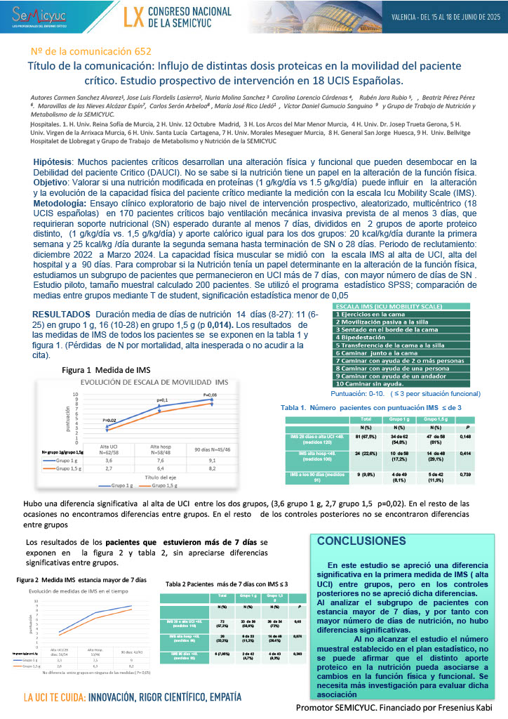 652. Influjo dosis proteicas en la movilidad del paciente crítico. Estudio prospectivo 18 UCIs Españolas
