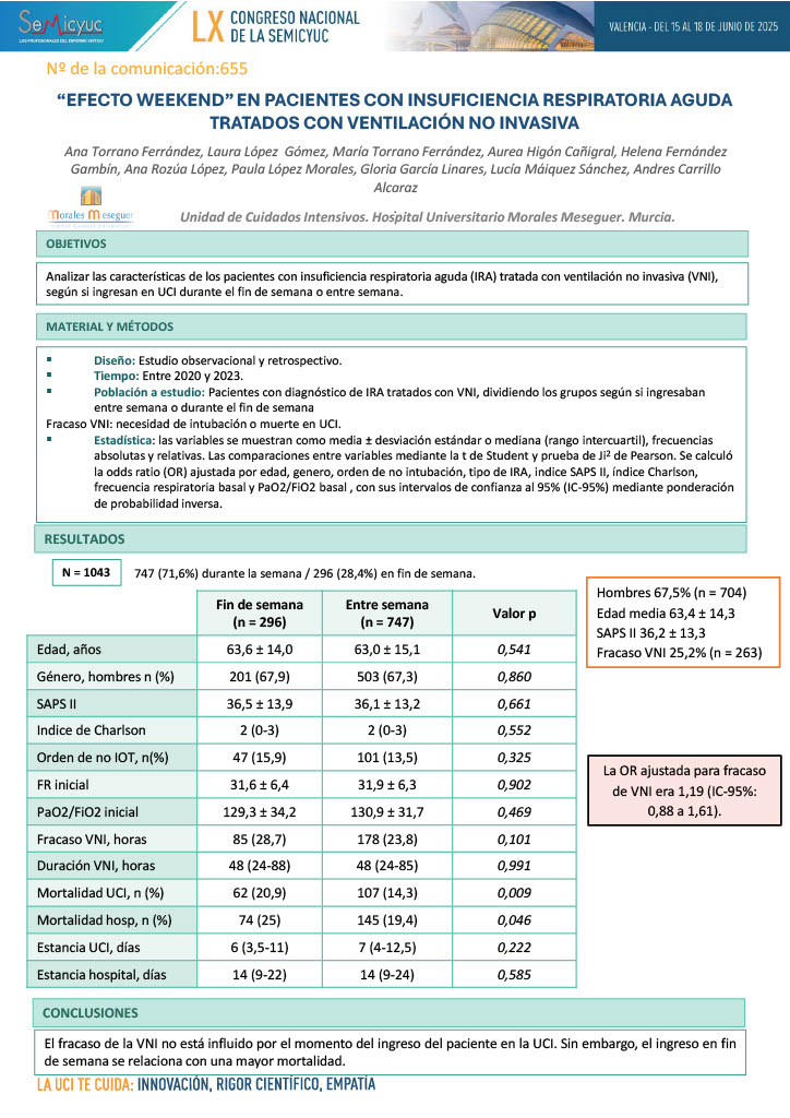 655. «Efecto Weekend» en pacientes con insuficiencia respiratoria aguda tratados con ventilación no invasiva
