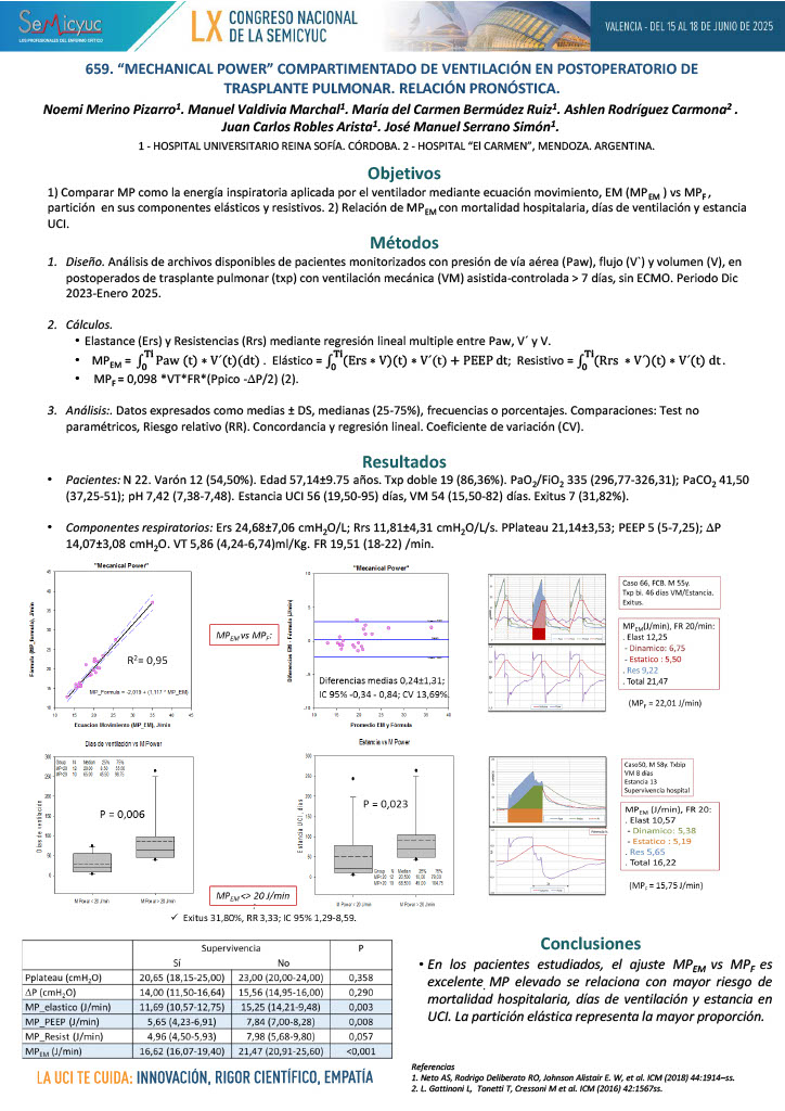 659. «Mechanical Power» compartimentado de ventilación en postoperatorio de trasplante pulmonar. Relación pronóstica