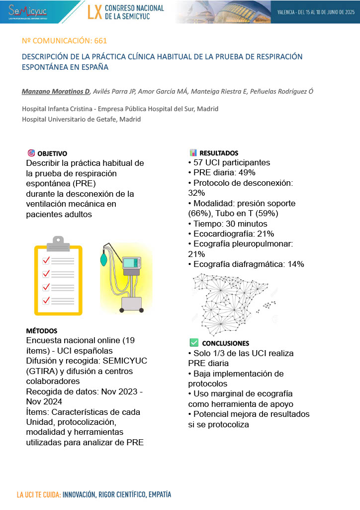661. Descripción de la práctica clínica habitual de la prueba de respiración espontánea en España