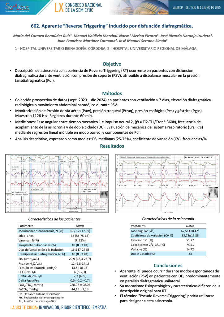 662. Aparente «reverse triggering» inducido por disfunción diafragmática