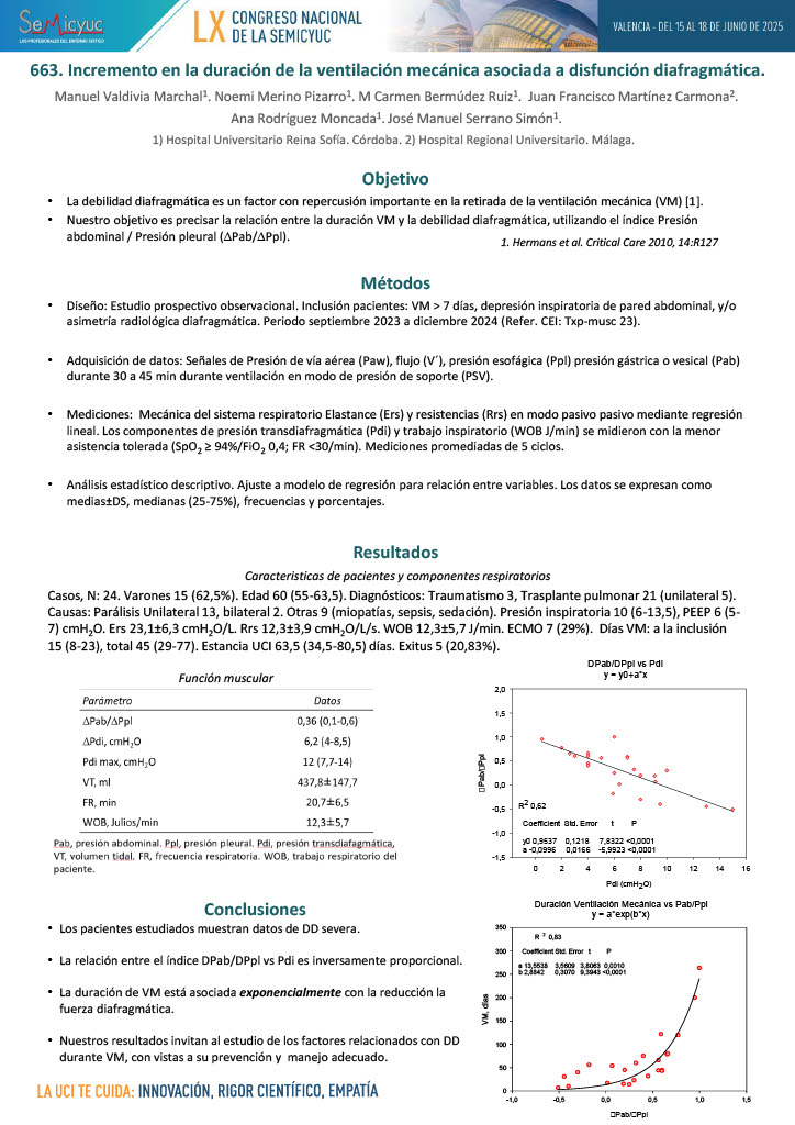 663. Relación entre duración de la ventilación mecánica y reducción en la fuerza diafragmática