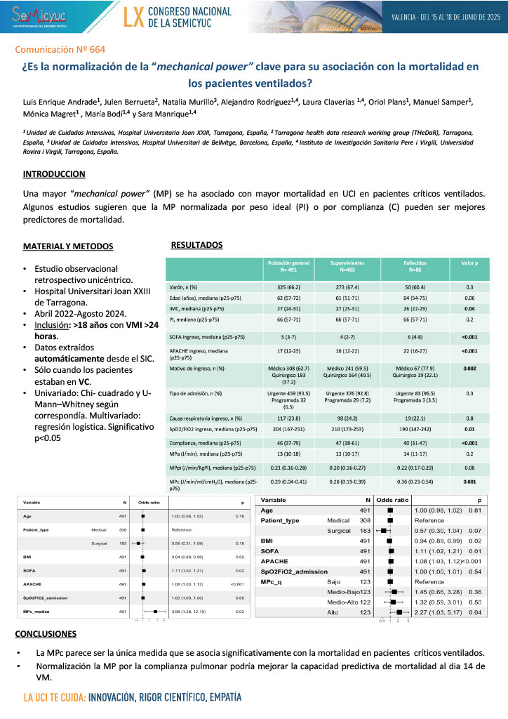 664. ¿Es la normalización de la «mechanical power» clave para su asociación con la mortalidad en los pacientes ventilados?