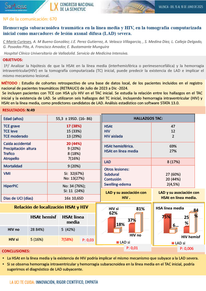 670. Hemorragia subaracnoidea traumática en la línea media y HIV, como marcadores de lesión axonal difusa (LAD) severa