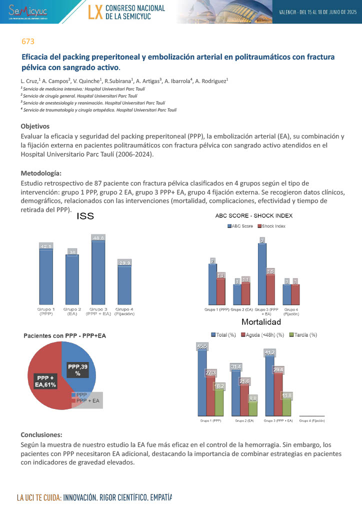 673. Eficacia del packing preperitoneal y embolización arterial en politraumáticos con fractura pélvica
