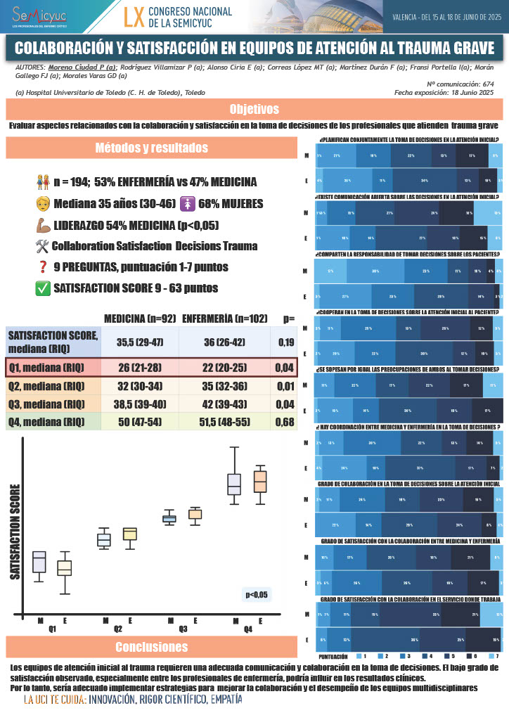 674. Colaboración y satisfacción en equipos de atención al trauma grave