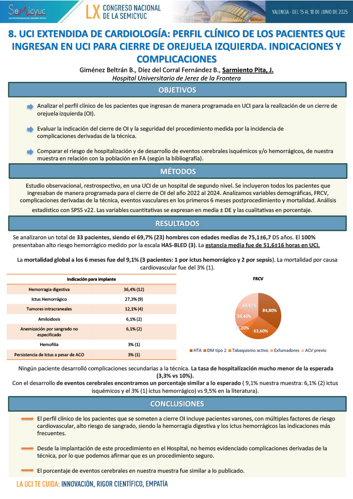 008. UCI extendida de cardiología: perfil clínico de los pacientes que ingresan en UCI para cierre de orejuela izquierda