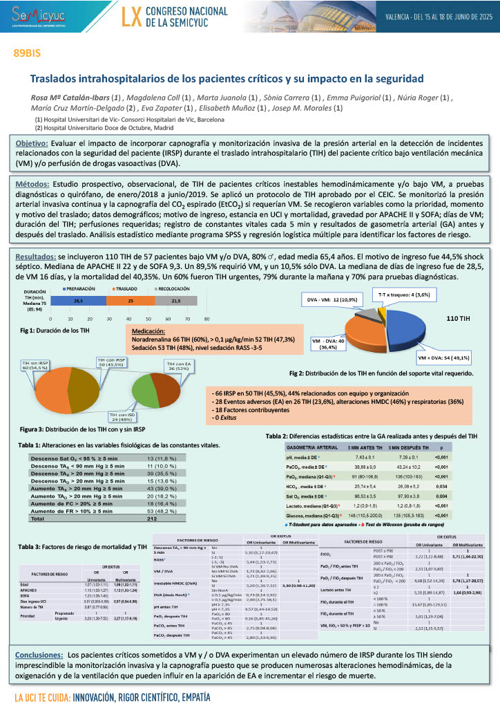 89BIS. Traslados intrahospitalarios de los pacientes críticos y su impacto en la seguridad