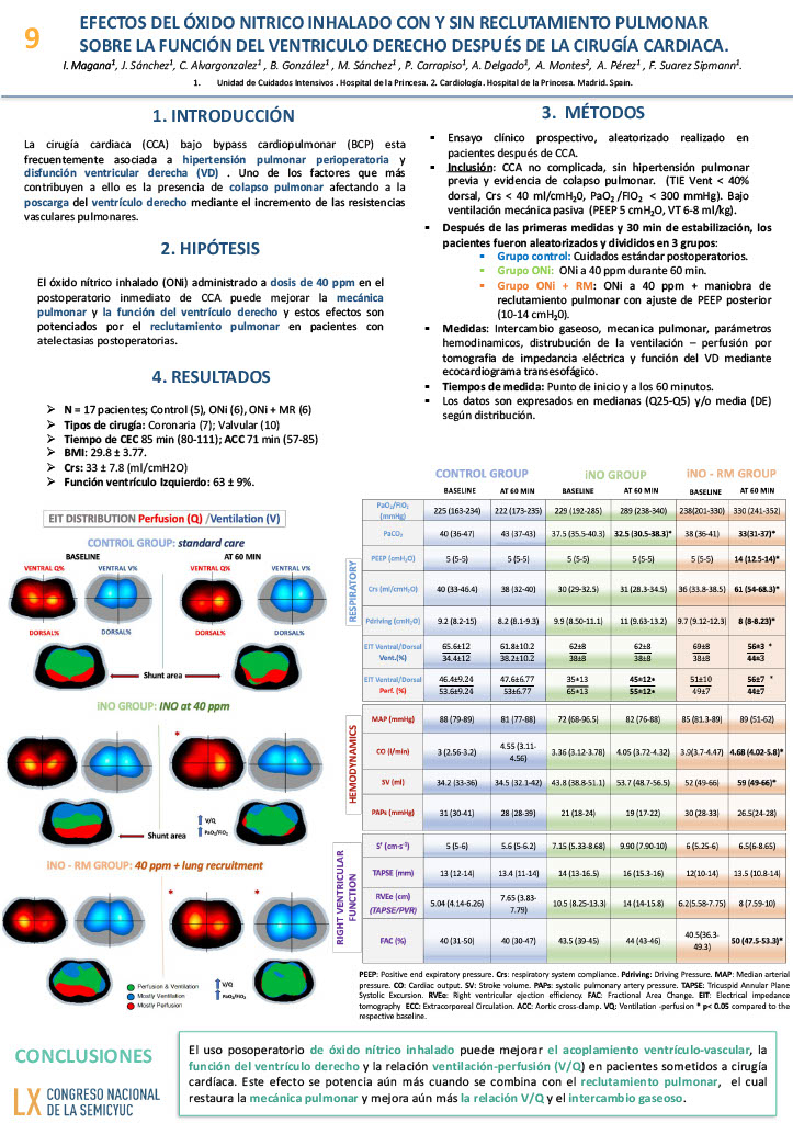 009. Efectos del óxido nítrico con y sin reclutamiento pulmonar sobre la función del ventrículo derecho post cirugía cardíaca