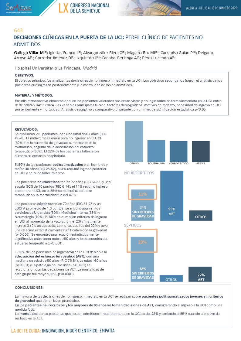 634. Decisiones clínicas en la puerta de la UCI: perfil clínico de pacientes no admitidos